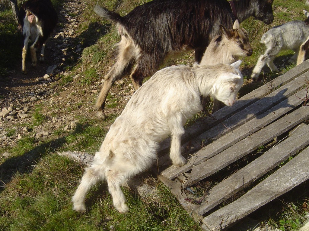 Les mères sont très proches l’une de l’autre, et les chevreaux, même s’ils tètent chacun leur mère, grandissent comme frère et soeur. Ils seront vendus ensemble.