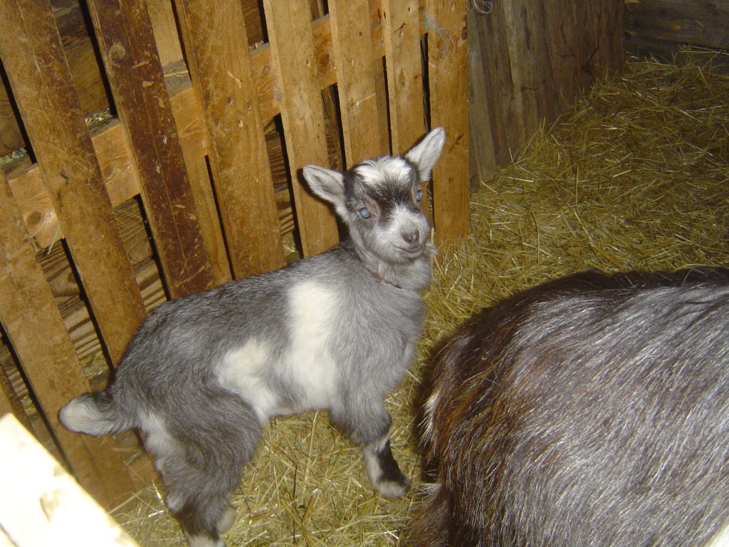 Mimine : chevrette discrète, tendre et très attachée …. Mère : Janille