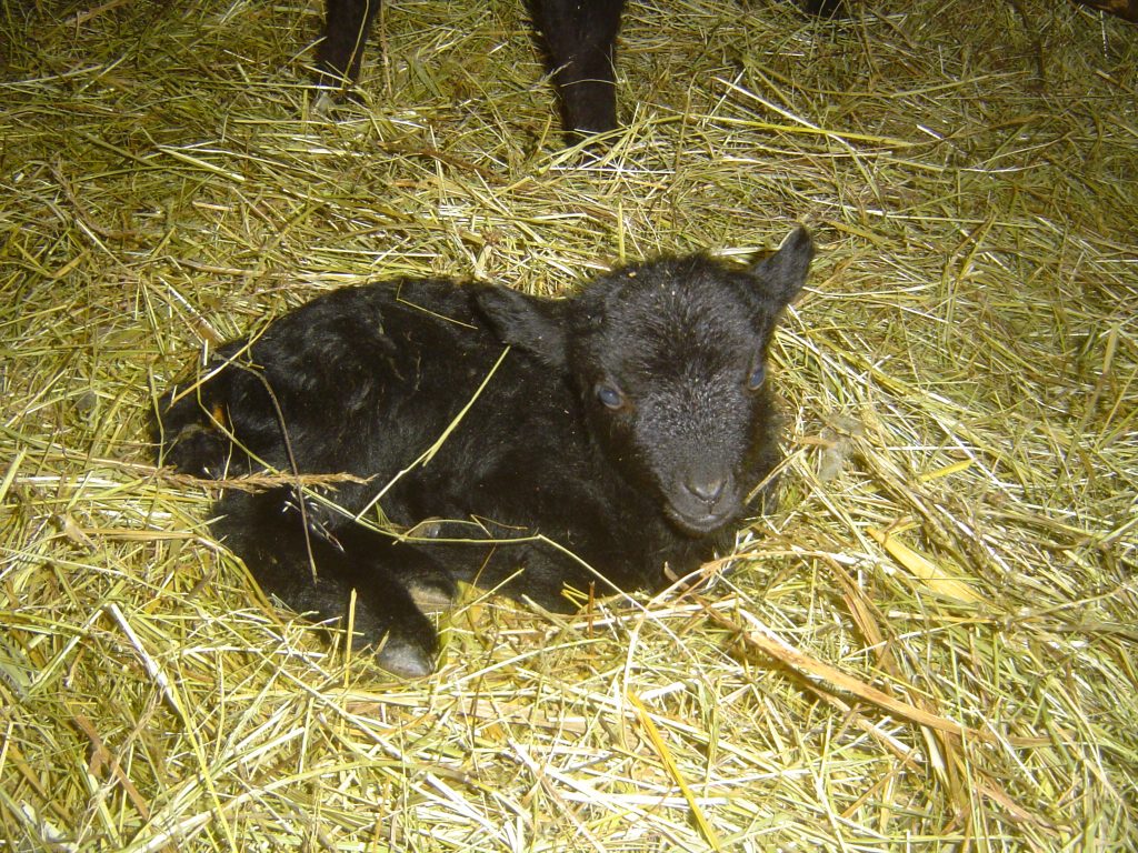 Toujours le 06/02 est né un agneau noir avec des poils blancs en tête. (mâle) de père : Papillon et de mère noire