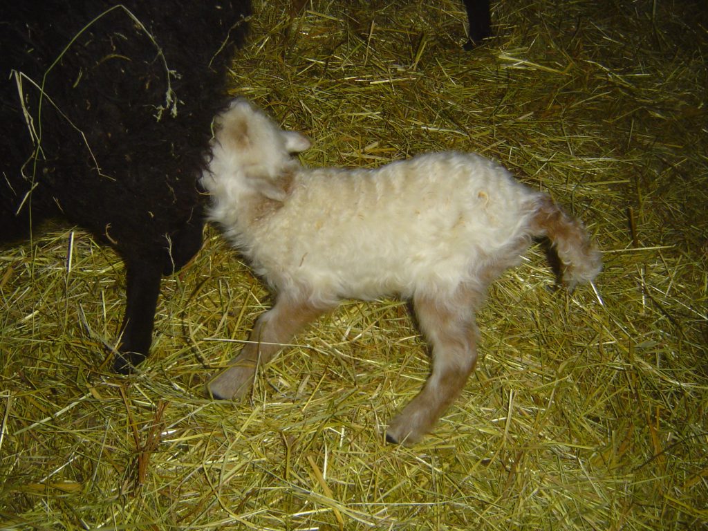 Puis le 01/02 est arrivé le 1er agneau noir … Un mâle. de père : Papillon et de mère noire