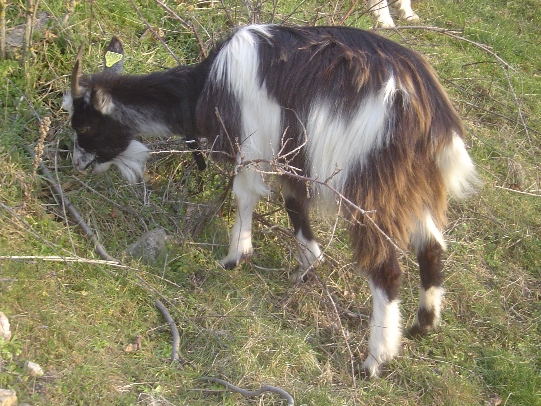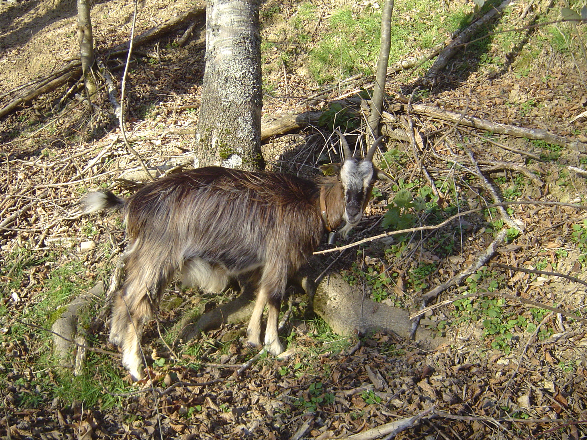 Liseronne est une jeune chèvre bien vivante…. Elle aussi a fait de gros progrès d’apprivoisement avec sa mise bas cette année. Gaie.