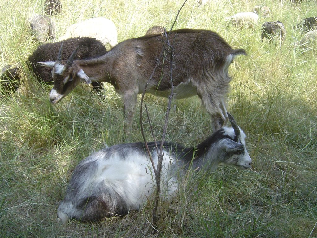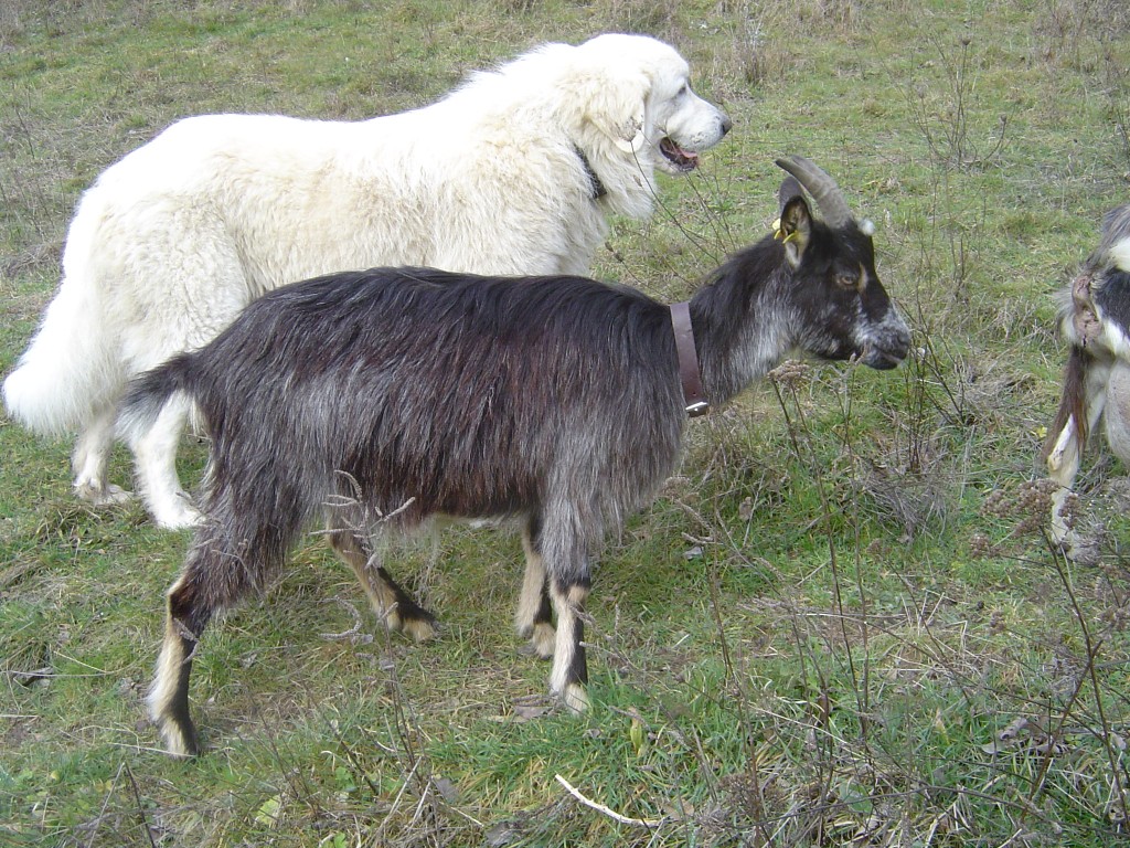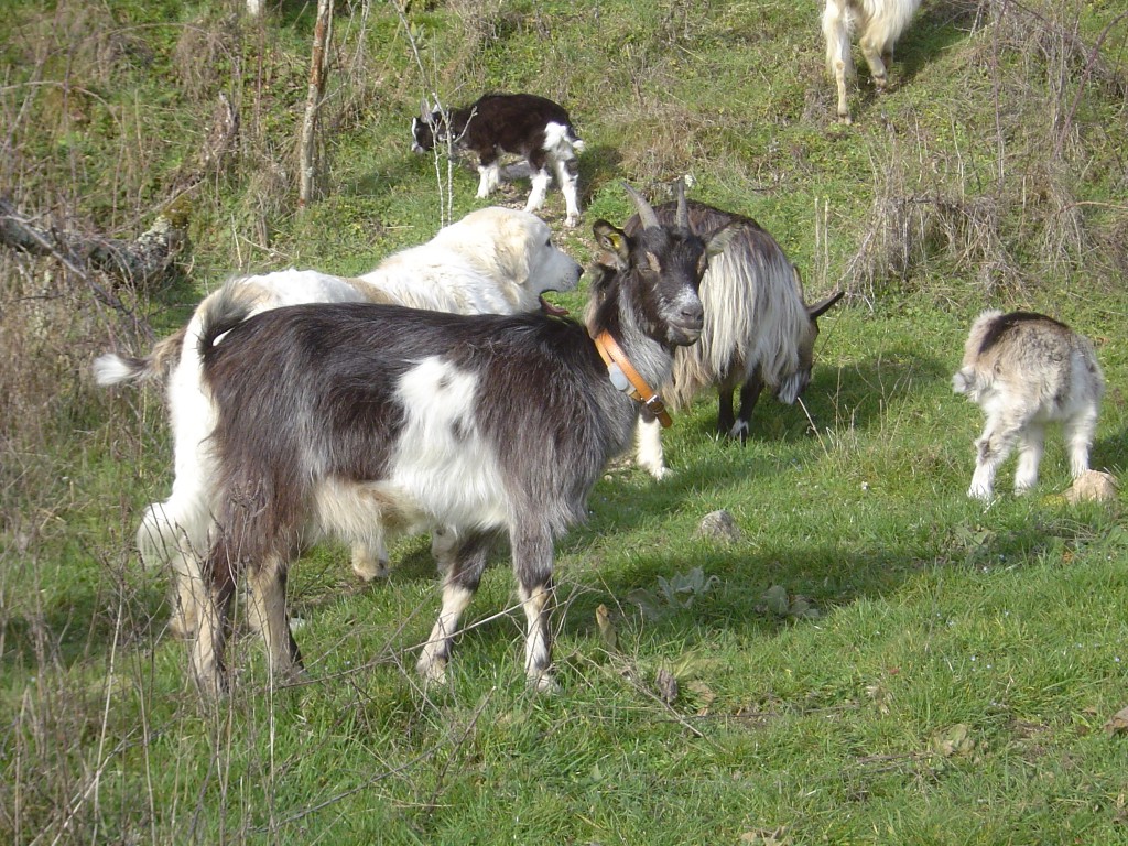 Loupi est un bouc paisible avec tout le monde : les personnes, les chèvres, les chevreaux, les chiens de protection.