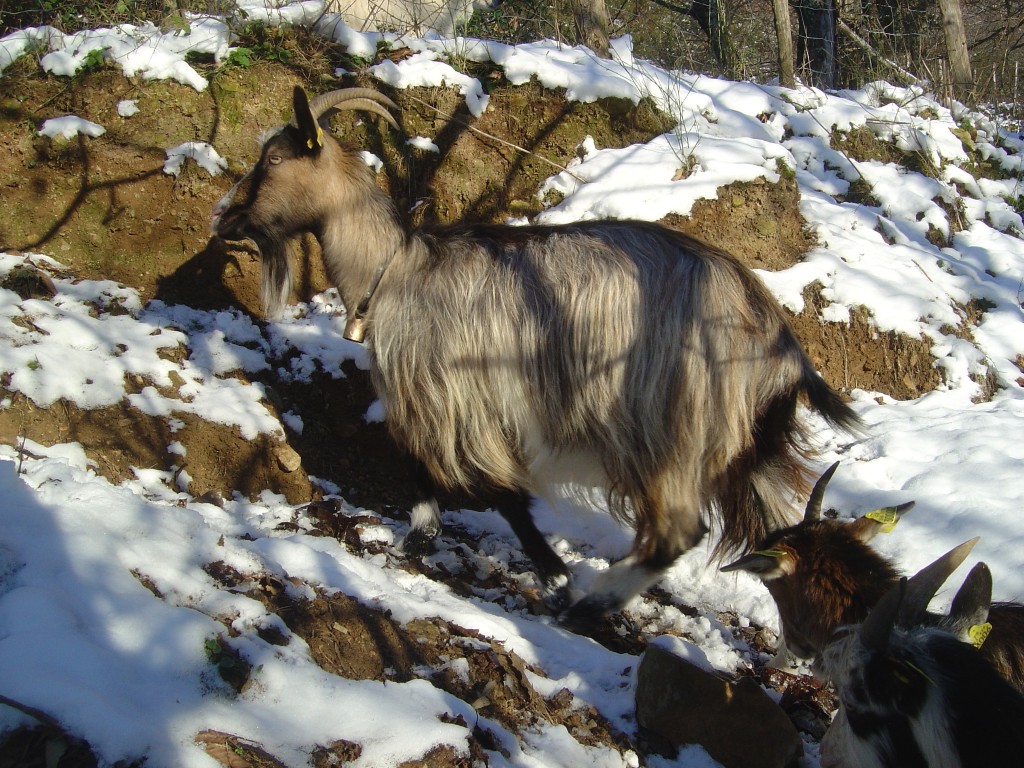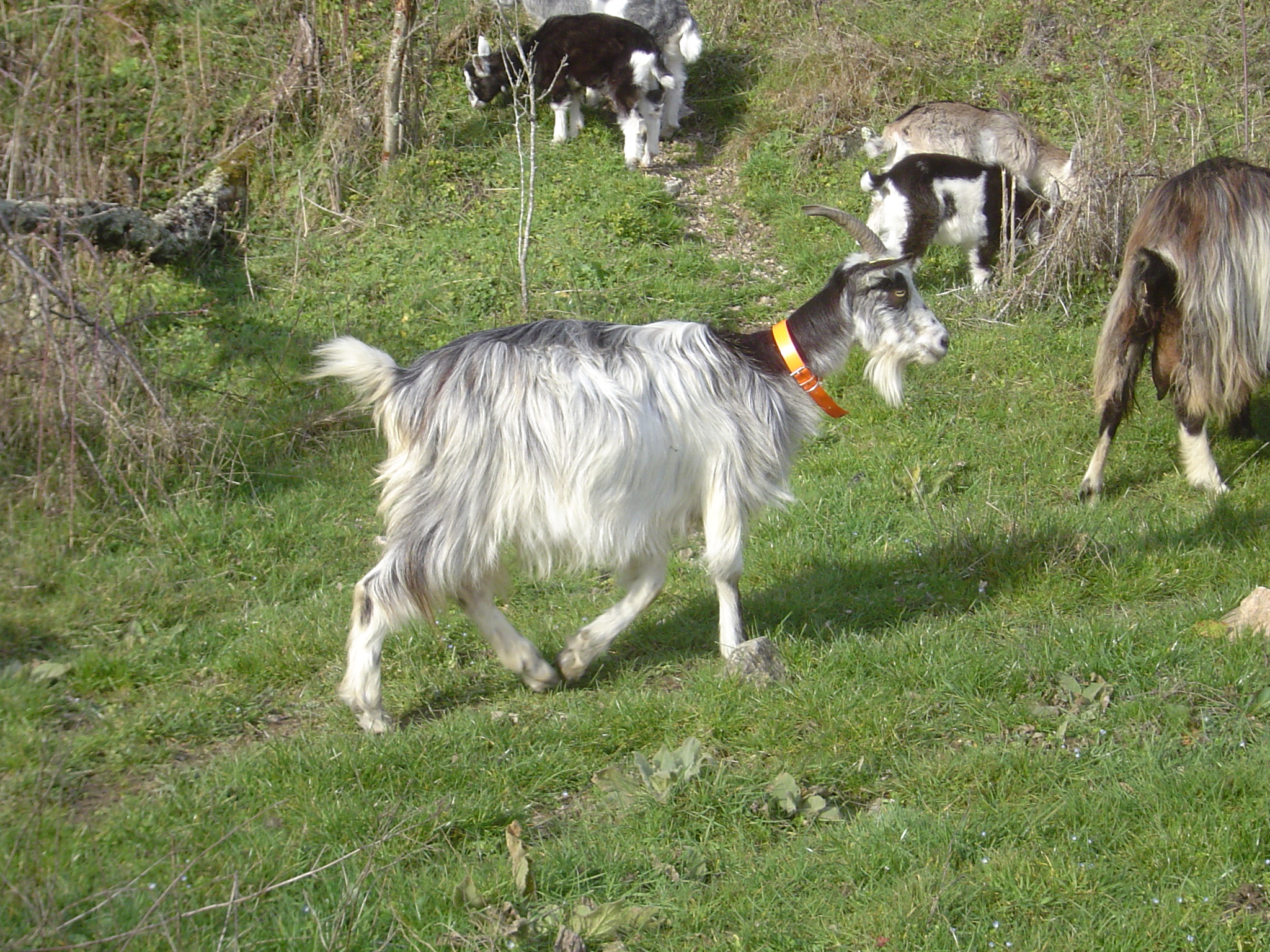 Caramba est une chèvre de 12 ans. Très caressante. Elle est la doyenne et la 1ère dans la hiérarchie du troupeau.