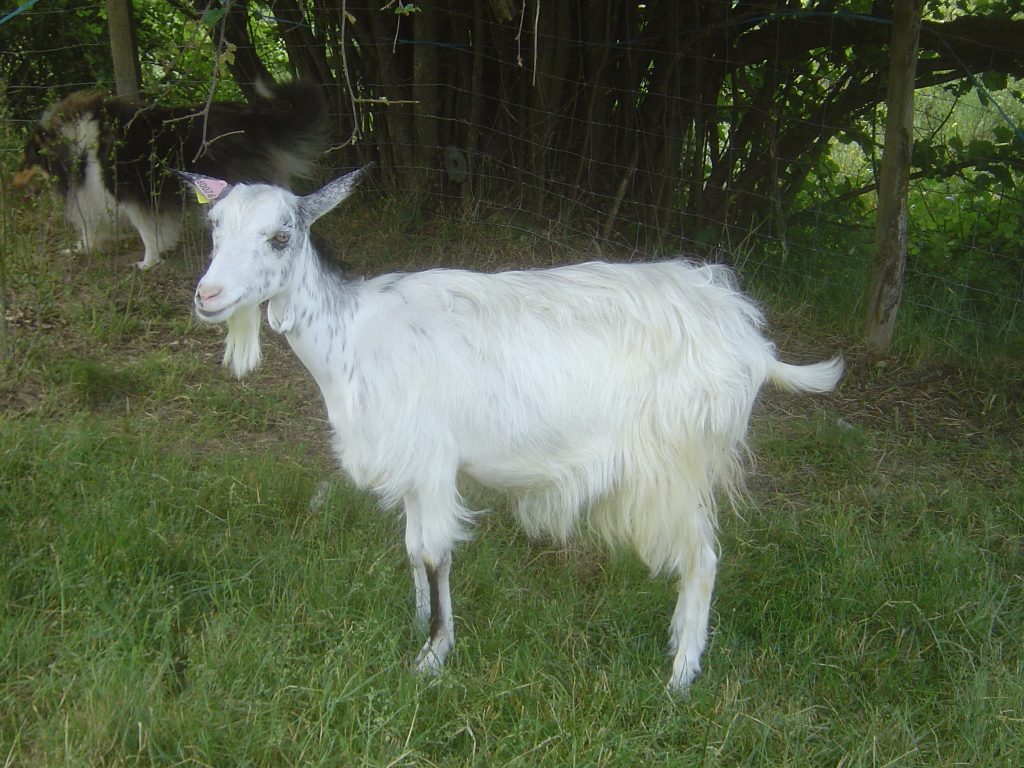 C’est une chèvre de caractère, qui sait s’imposer ….. Gourmande, elle vient quémander un peux de grains, mais ne se laissera pas forcément câliner ….. Elle a maintenant fait beaucoup de progrès et je peux maintenant l’attraper au collier sans souci. Elle a la particularité de mettre bas 3 chevreaux.