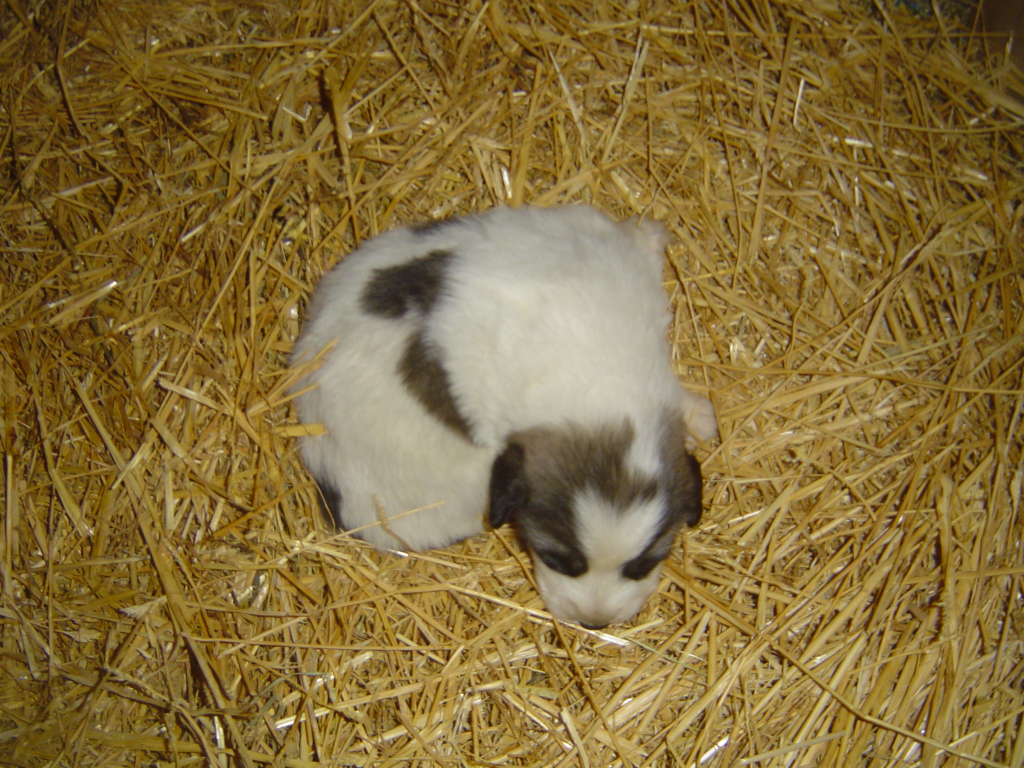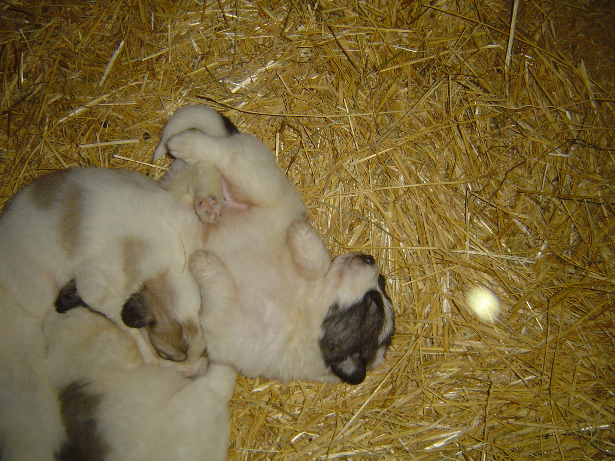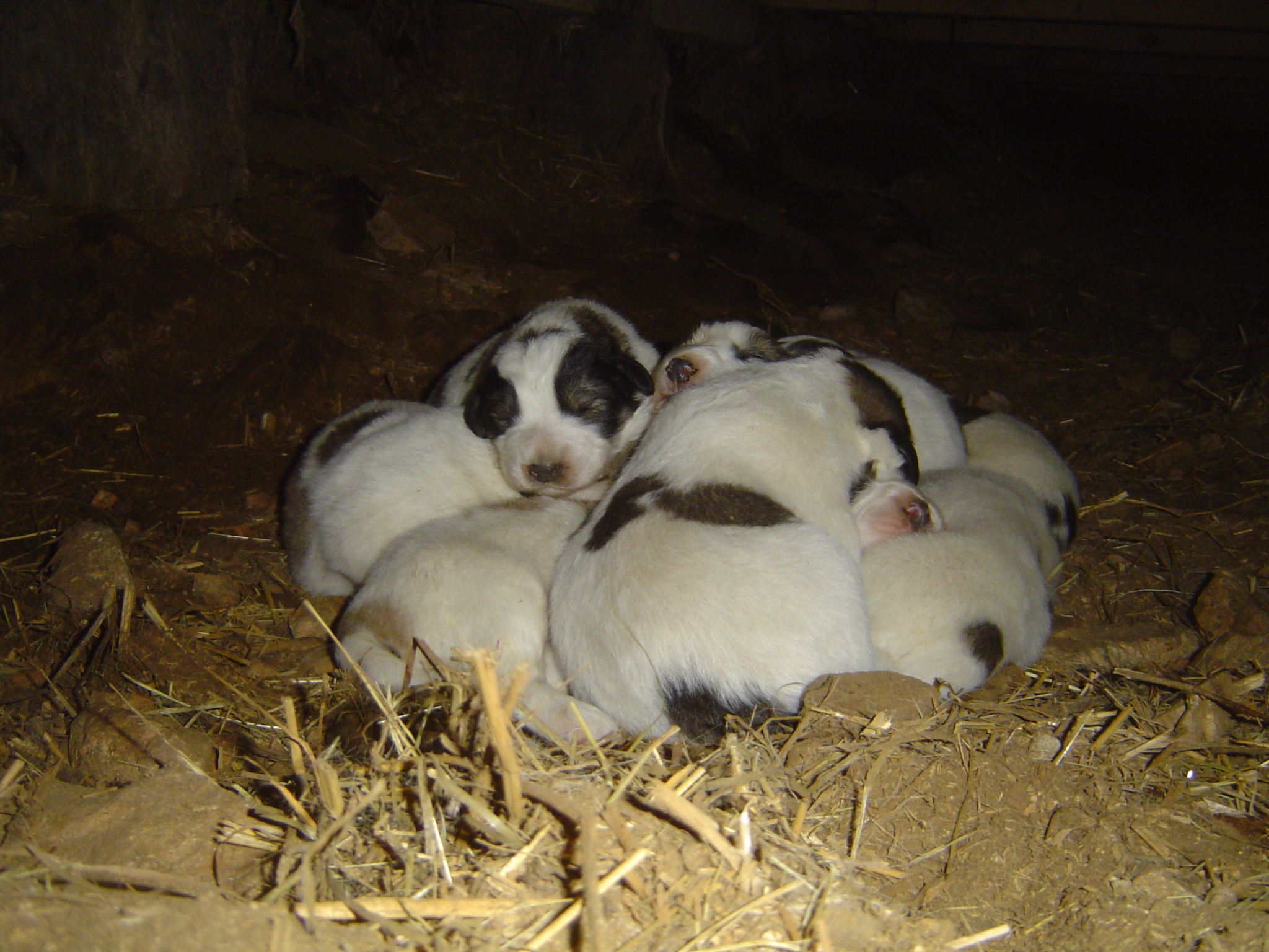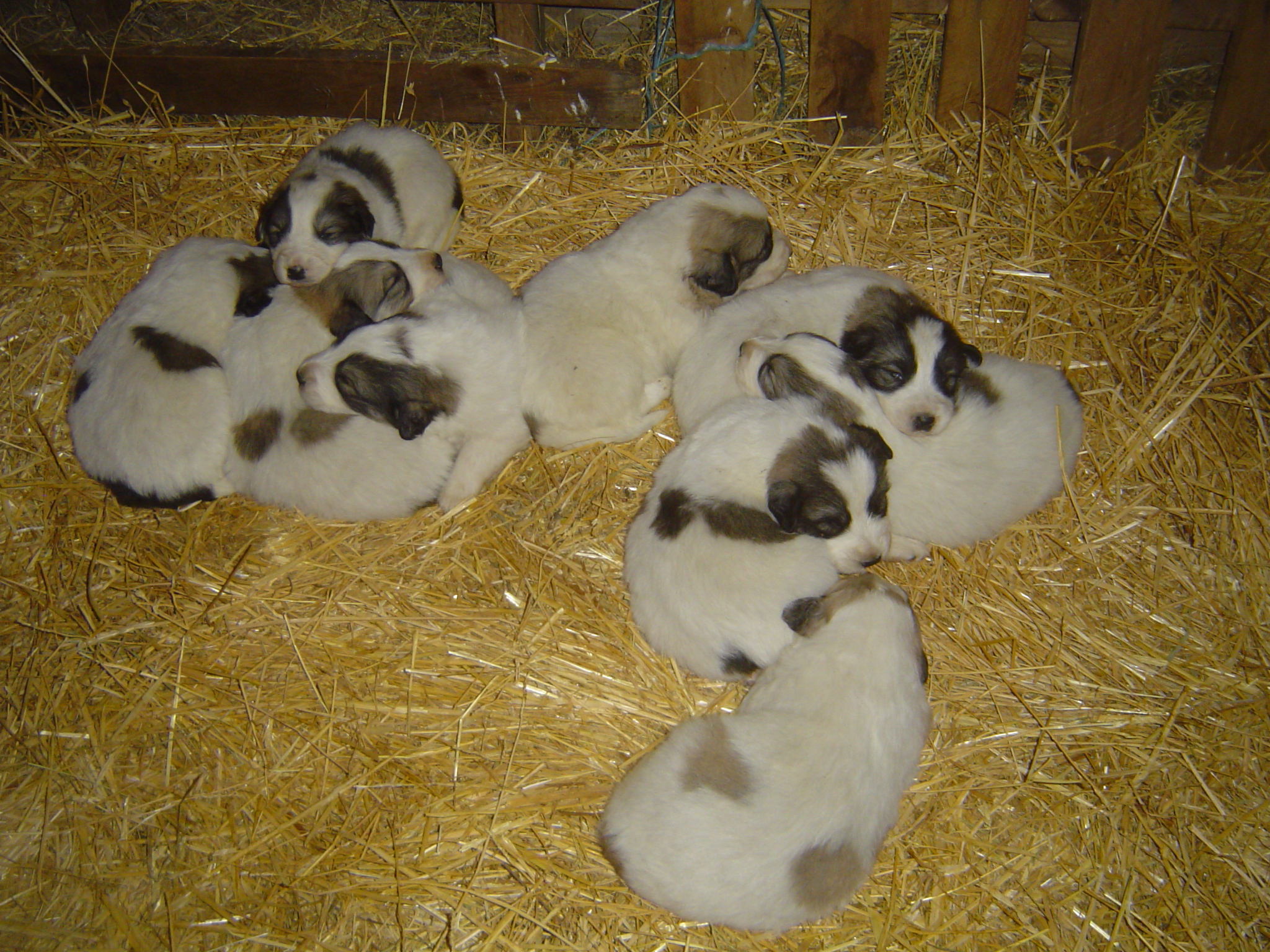 Ibougne du Hogan des Vents a donné naissance, le 2 Mai 2016 à 9 chiots : 6 mâles et 3 femelles. Tout le monde se porte bien pour l’instant. Les chiots sont à vendre et peuvent être réservés dès à présent. Ils seront disponible à partir du 2 Juillet 2016. Ibougne les a installés sous une mangeoire dans l’abri des chèvres. Ils auront contact avec le troupeau dès qu’ils commenceront à marcher ….. Ils seront aussi en contact avec les autres patous de la meute : 2 mâles (dont le père) et une chienne de presque un an. Tout cela fera d’eux des chiots équilibrés et dégourdis, et bien sûr très très affectueux, vu qu’ils seront manipulés et caressés sans restriction …..